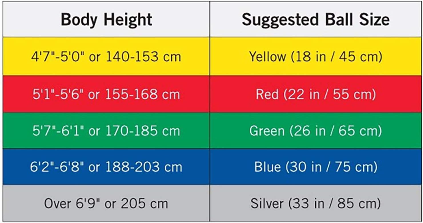 - 55cm diameter (22") is designed for individuals from 5'1" - 5'6" tall