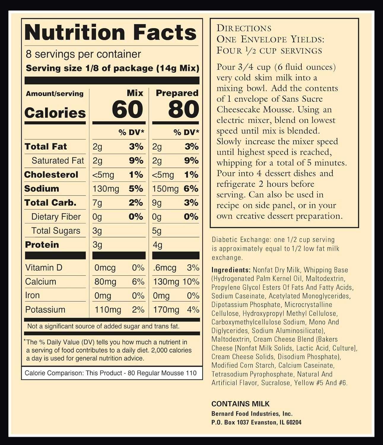 SANS SUCRE Cheesecake Mousse Mix - Sugar Free and Gluten Free