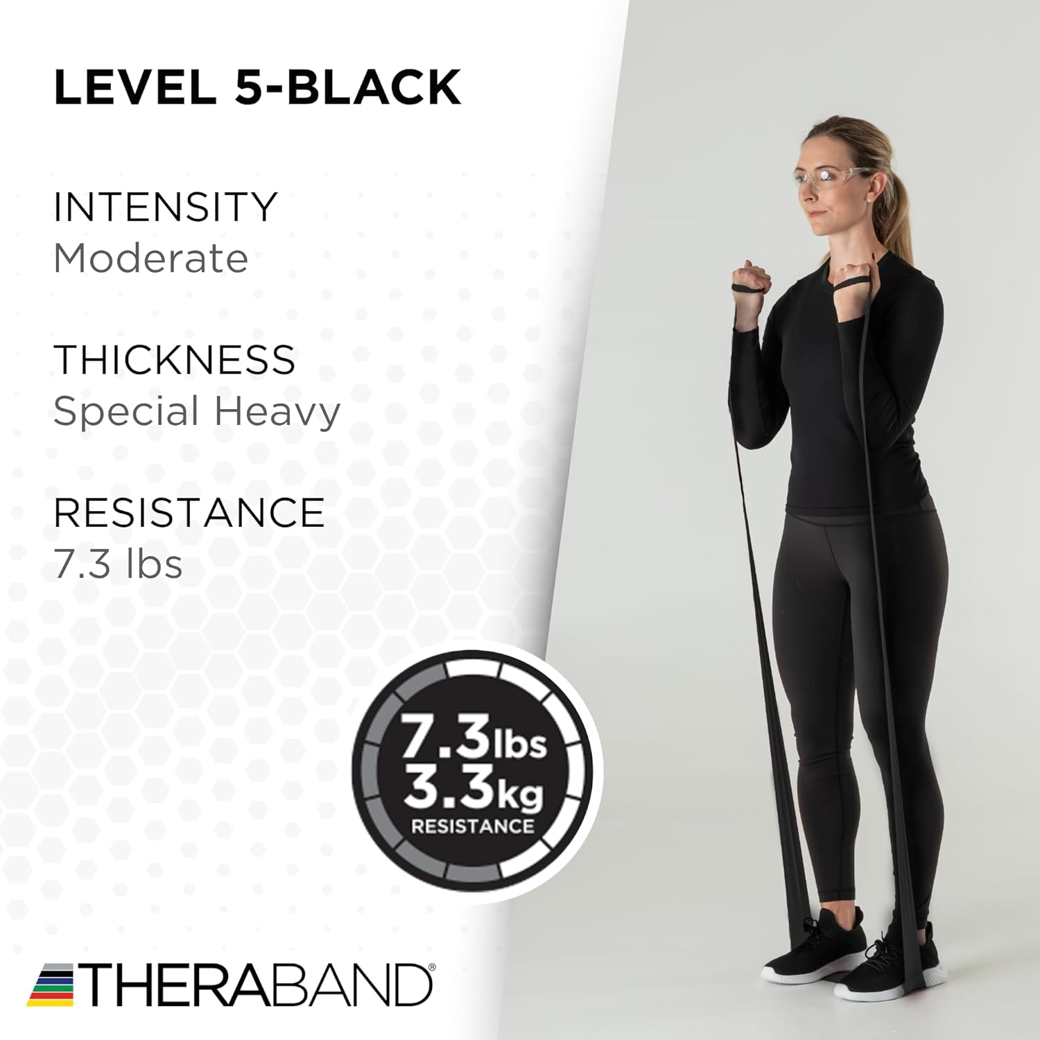 - Special Heavy Black Bands are the 6th of 8 resistance levels, for rehab and high level resistance. They offer 7.3 lbs. resistance at 100% elongation, a 25% increase from the previous color, and 10.2 lbs. at 200%. The roll measures 25 yards long x 4" wide