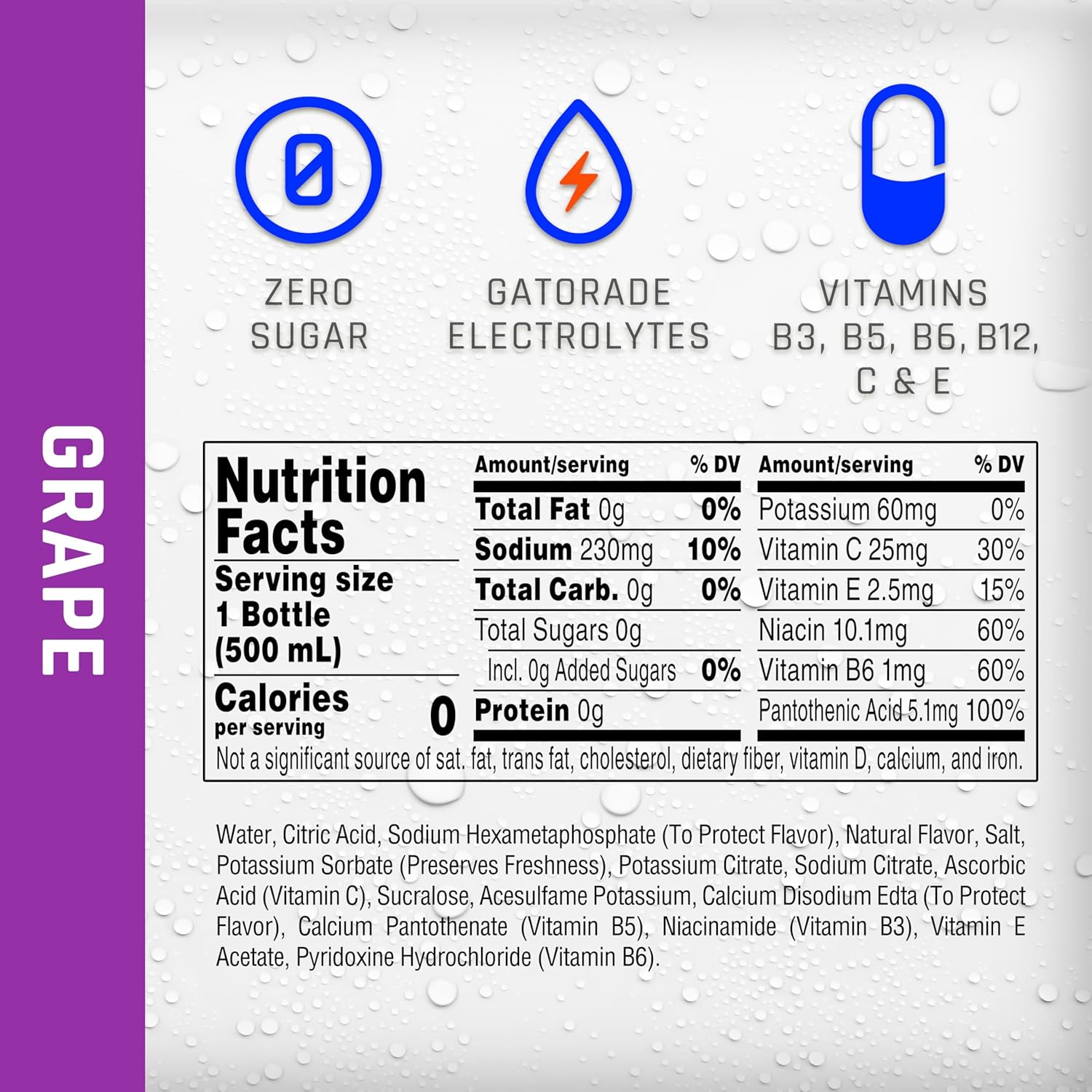 - Includes 12 (16.9 fl oz) bottles of Propel Electrolyte Enhanced Water, Grape flavored water with Zero Calories, Zero Sugar, Electrolytes for Hydration, and Vitamins C & E