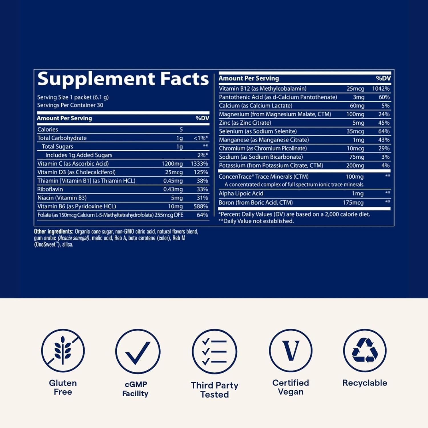 Trace Minerals | Power Pak Electrolyte Powder Packets | 1200 mg Vitamin C, Zinc, Magnesium | Boost Immunity, Hydration and Natural Energy | Orange Blast | 60 Packets