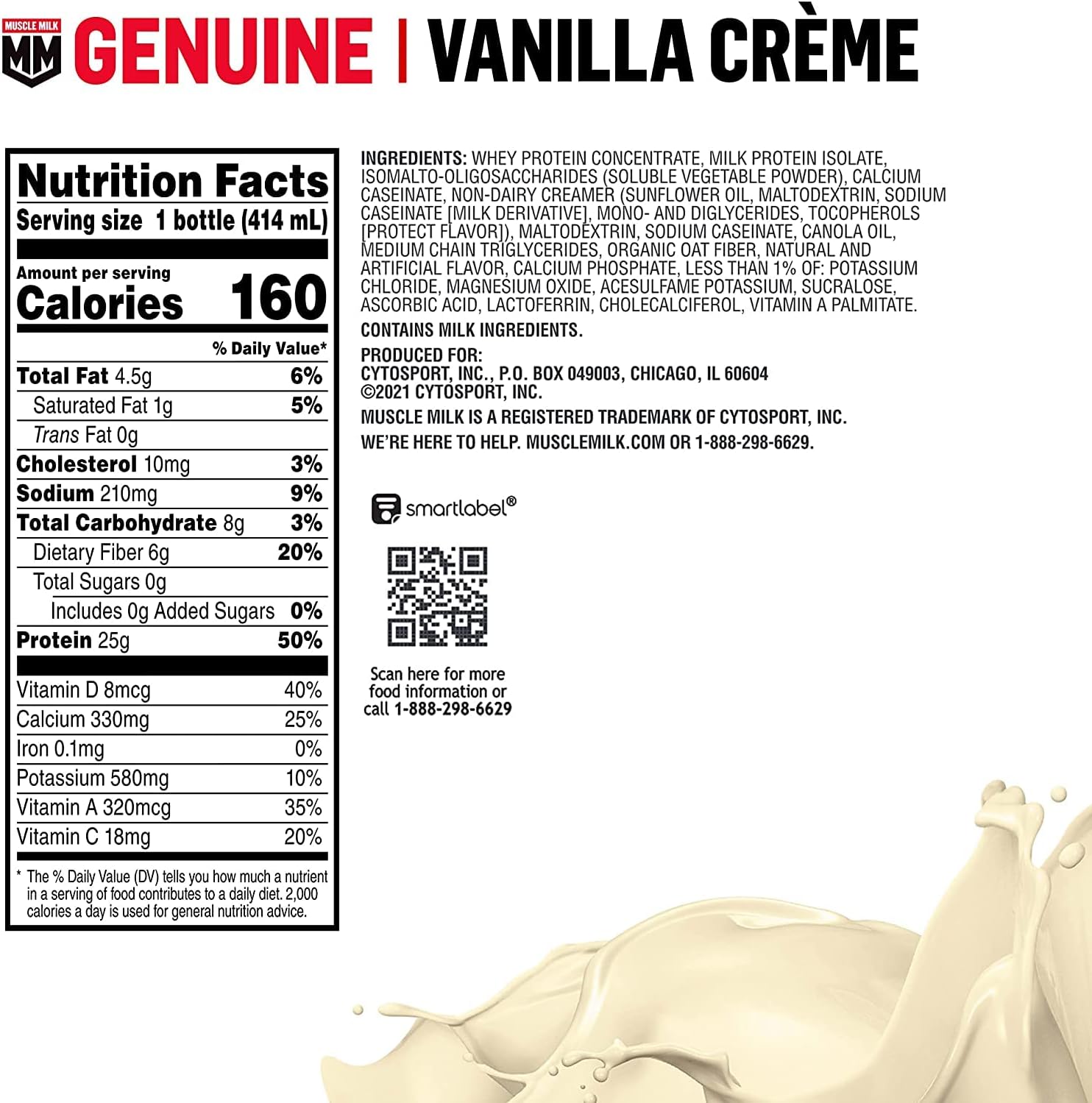 Muscle Milk Genuine Liquid Protein Shake, Vanilla Crème, 25g Protein, 14 Fl Oz Bottle, 12 Pack