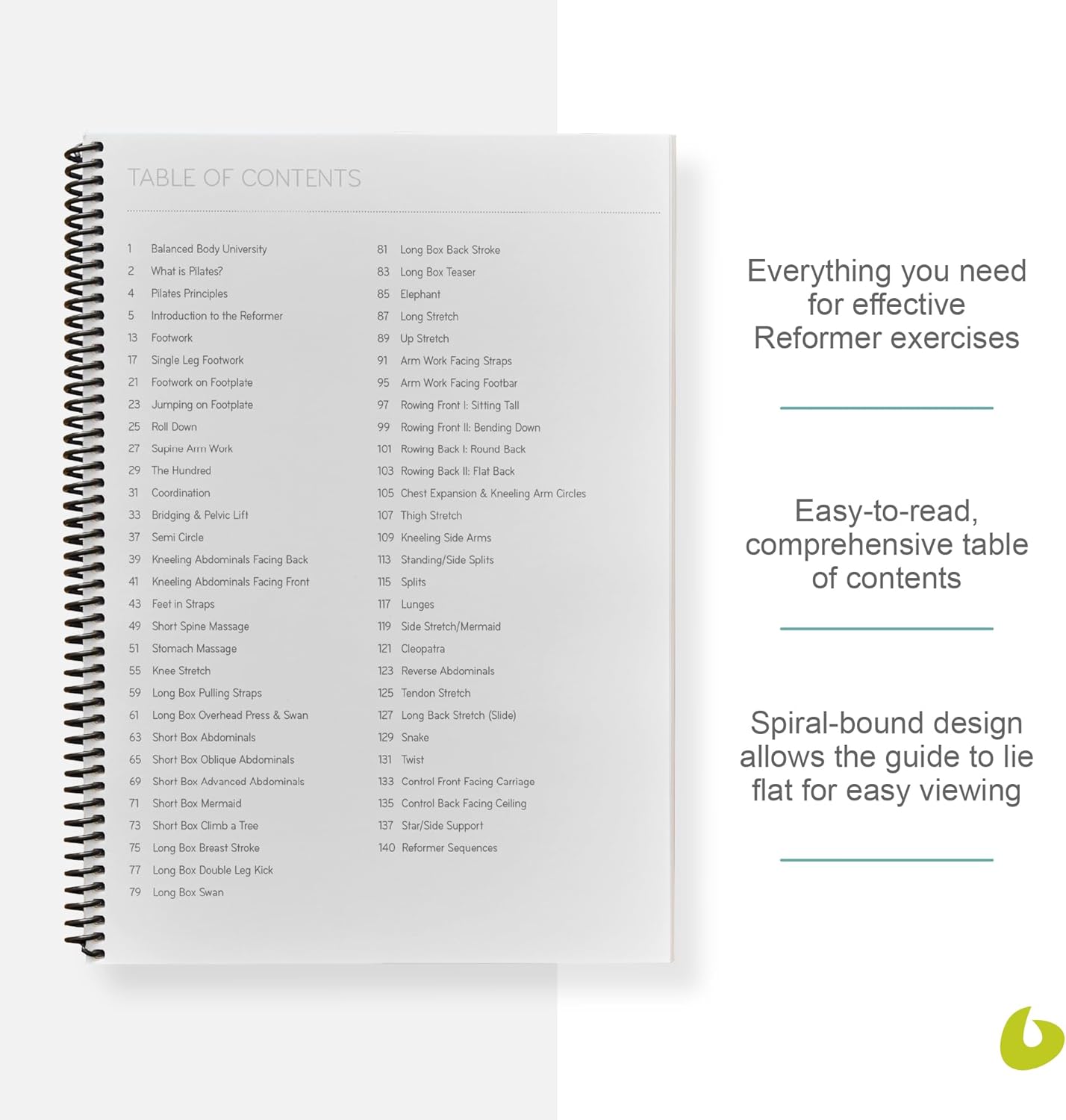 - EQUIPMENT MASTERY: This dedicated guidebook will help you master the details of your Balanced Body Pilates equipment. It provides clear instructions on proper usage so you can safely harness your Reformerโs full potential.
