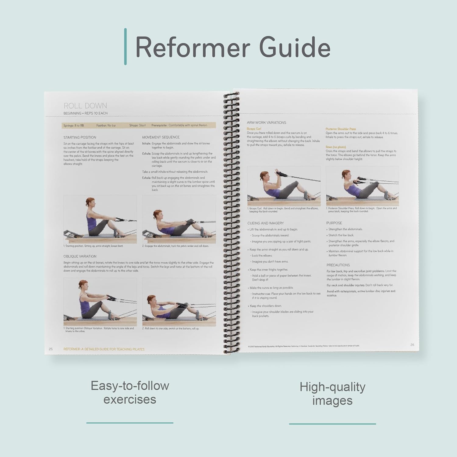 - PILATES EQUIPMENT GUIDE: Maximize your Pilates workout with our Reformer Guide. This useful exercise guide features 165 pages with 103 exercises, full-color pictures, and step-by-step instructions so you can get the most from your workout.