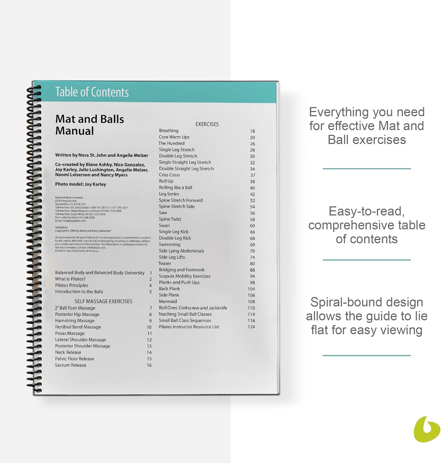 - PILATES TRAINING MANUAL: This dedicated guidebook will help you master the details of your Balanced Body Pilates equipment. It provides clear instructions on proper usage so you can safely harness the full potential of your mat and ball.