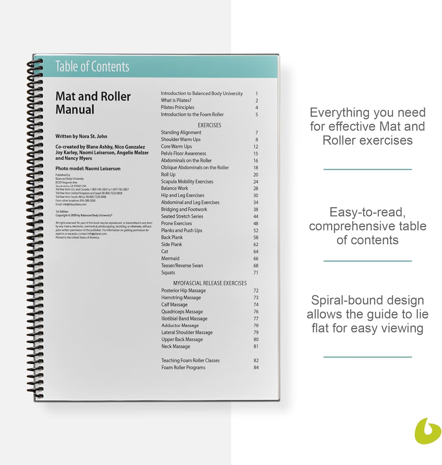 Balanced Body Mat and Roller Guide, Pilates Mat and Roller Guide for Workout Equipment, for Home Gym or Studio Use