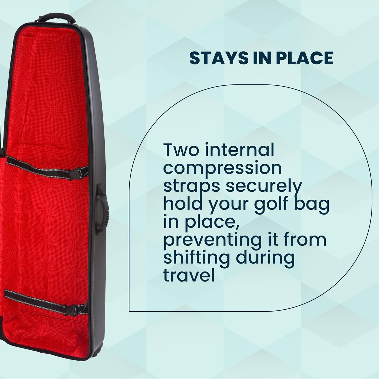 - Internal compression straps secure the golf bag inside the case