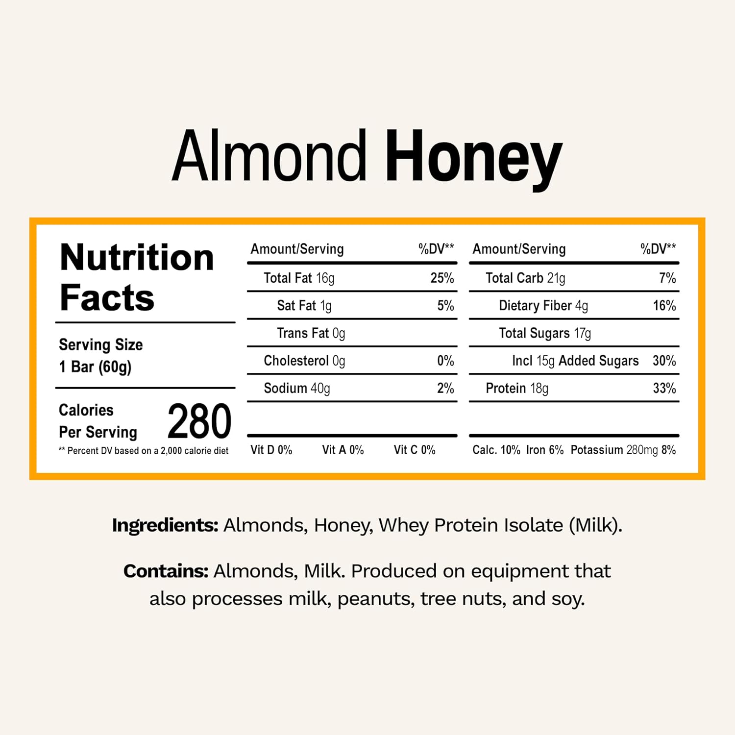 Rise Breakfast Whey Protein Bars Almond Honey, 18g Protein, 2.01 oz (12 Pack)