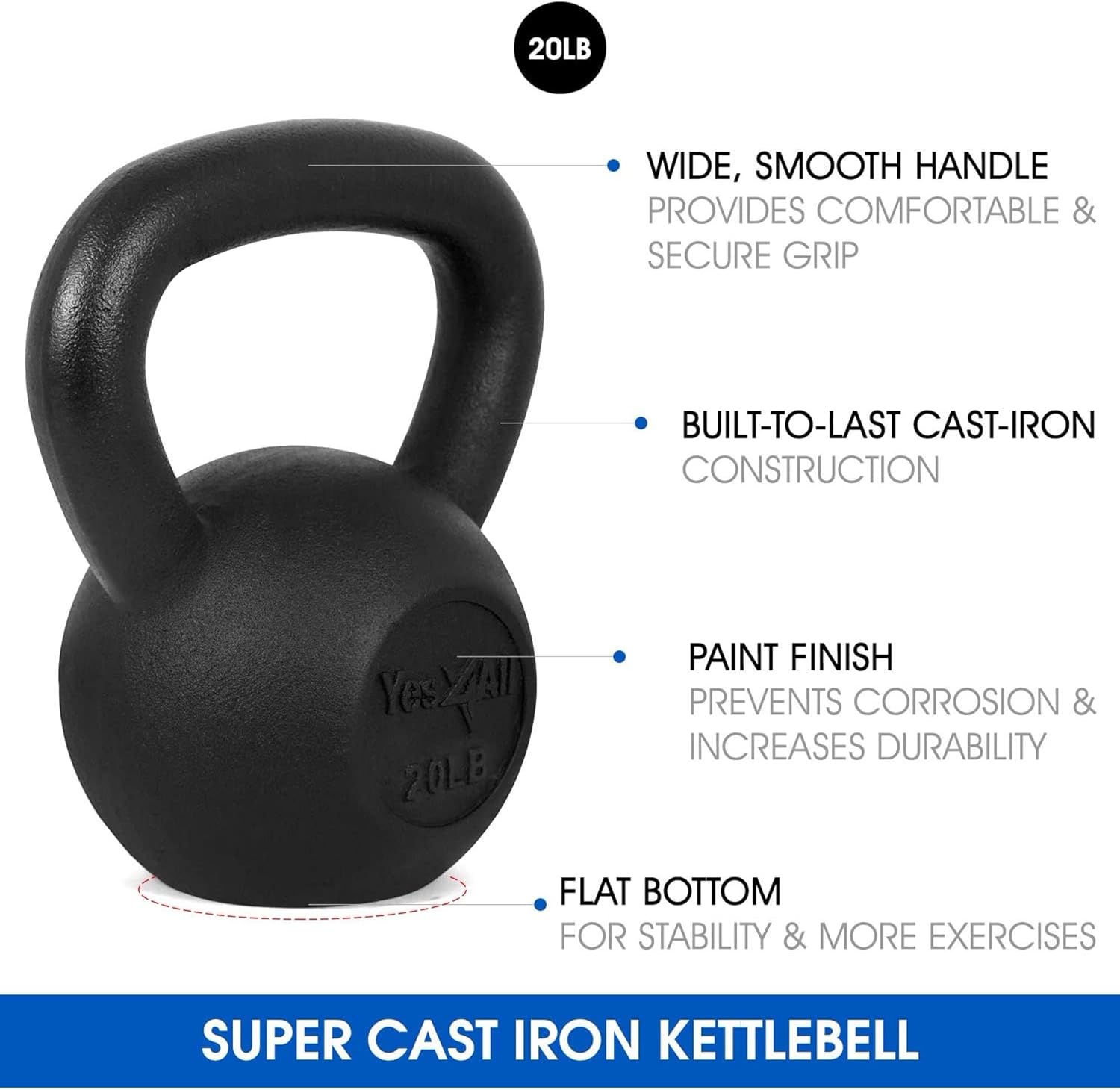 - 20 POUNDS SOLID CAST IRON HEAVY KETTLEBELL: Crafted for longevity, strength training kettlebells showcase a sturdy solid cast iron construction without welds, weak spots or seam, offering consistently high performance through fitness journey