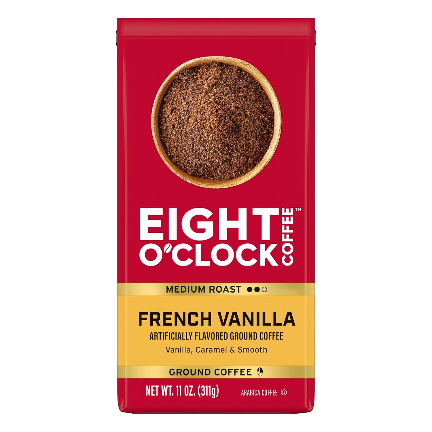 Eight O'Clock Coffee French Vanilla Ground Coffee, Medium Roast, 11 Ounce (Pack of 6) - Smooth & Aromatic