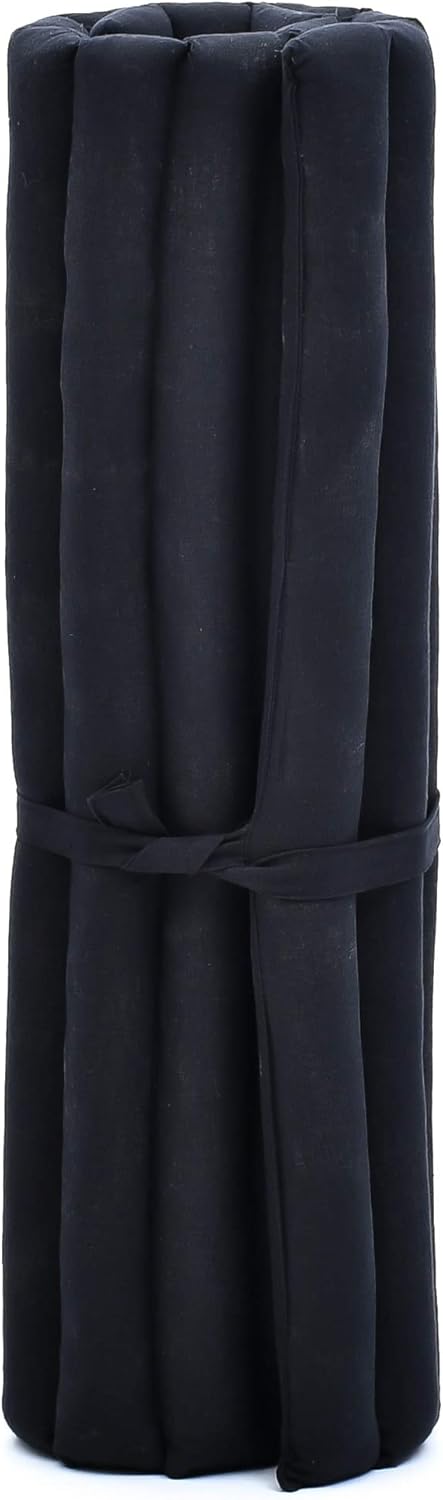 - Contents: The yoga meditation mat measures 28 x 28 x 2 inches (WxDxH) when spread out. After use, it can be rolled-up for storage and transport. The rolled-up mattress measures 28 x 8 x 8 inches (WxDxH)