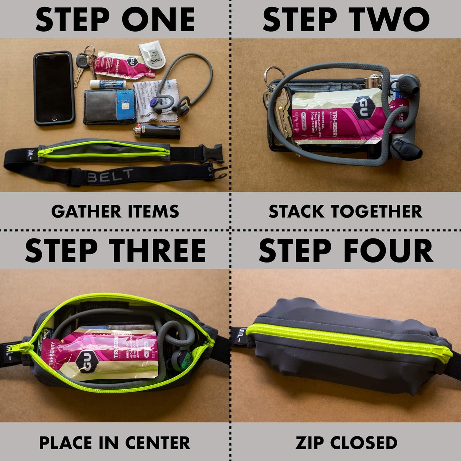 - Expandable, No-Bounce Pocket: The SPIbelt running belt expands to 9" x 4" x 2" to comfortably hold your phone, passport, energy gels, headphones, keys, ID, credit cards, and more—all without bouncing or shifting while you move.