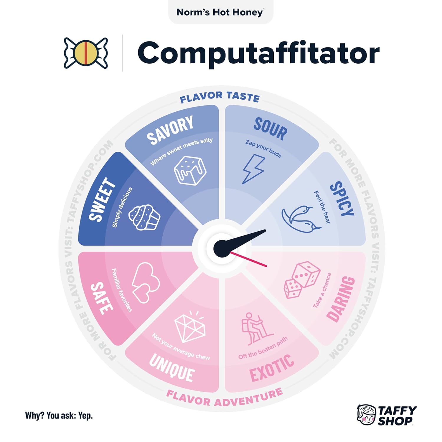 - Norm's Hot Honey taffy brings the perfect clash of spicy heat from hot sauce and smooth honey sweetness. Every chewy bite delivers a bold, fiery flavor that’ll light up your taste buds and keep you coming back for more!