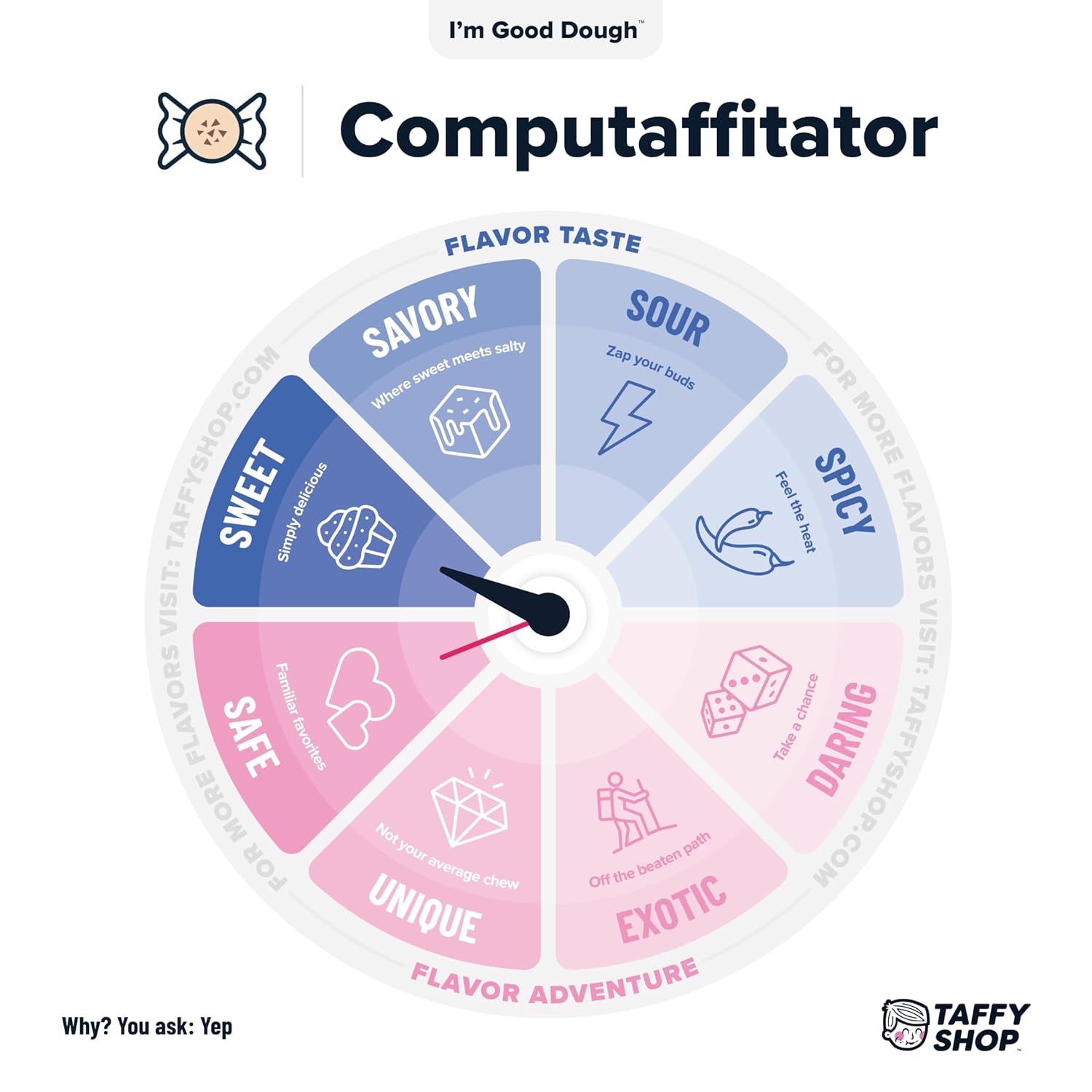 - I'm Good Dough serves up the classic taste of cookie dough in every chewy bite! Sweet, creamy, and irresistibly nostalgic, this taffy is perfect for dessert lovers craving a dough-licious treat