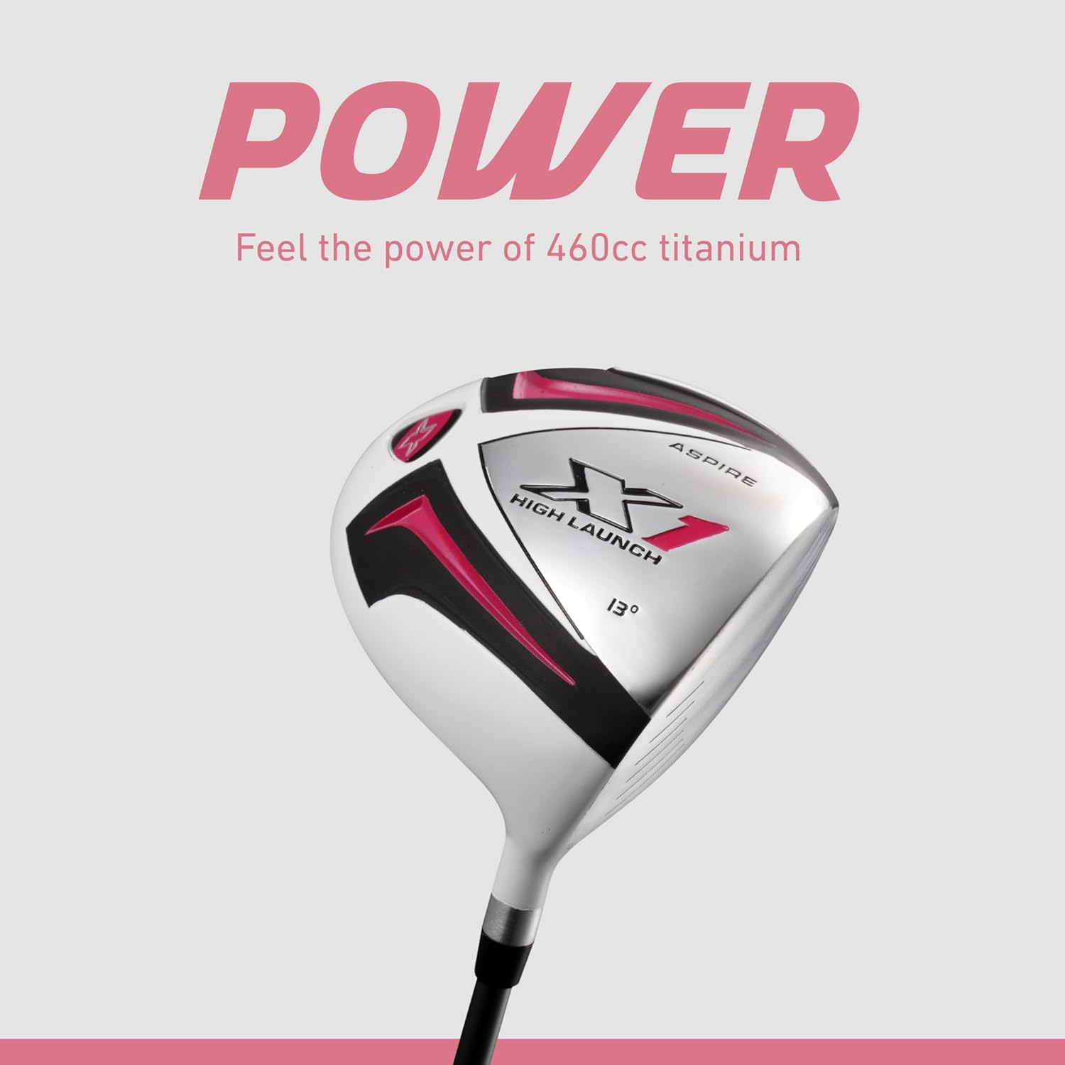 Aspire X1 Womenβs Golf Clubs Set β 15 Piece Golf Club Package with Titanium Alloy Driver, Fairway Wood, 6pw Irons, Putter, Lightweight Stand Bag & Headcovers β Right Handed Petite & Regular Sizes