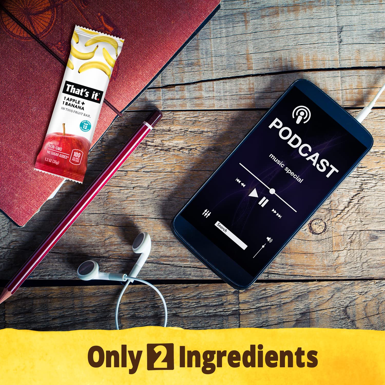 That's It Nutrition Apples + Banana 100% Natural Real Fruit Bar, Paleo for Children & Adults, Non GMO Sugar-Free, No preservatives Energy Food, 14.4 Oz, Pack of 12