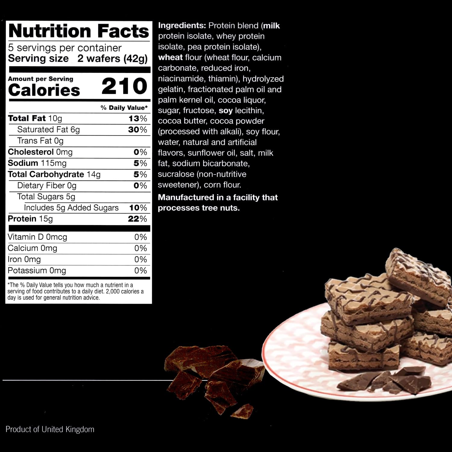 ProtiWise High Protein Wafers | Chocolate | 15g Protein Per Serving, Low Carb, Low Sugar, High Fiber Snack | Gluten-Free, Keto-Friendly for Hunger Control | 5/Box