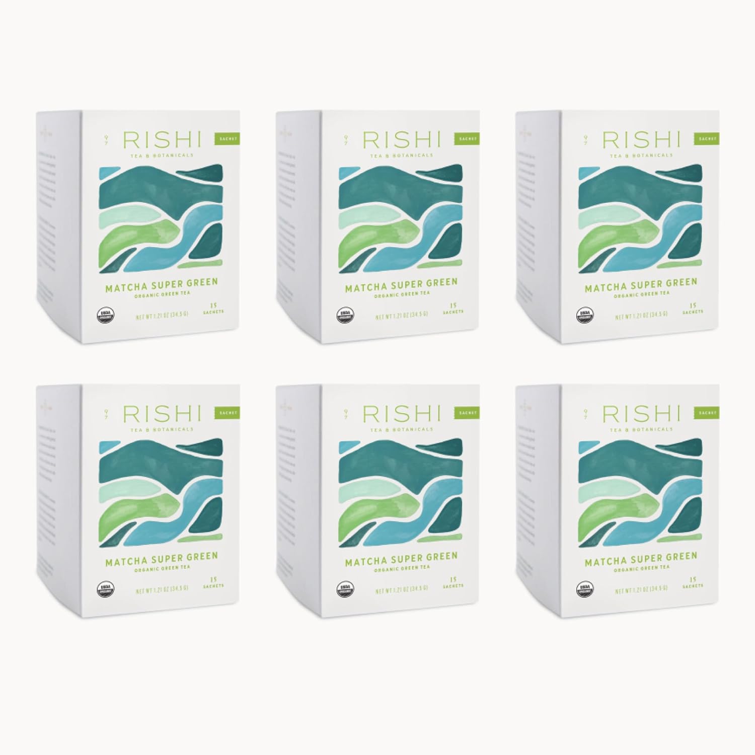 Rishi Tea Matcha Super Green Japanese Tea - Organic, Caffeinated Sachet Bags, Umami, Antioxidant Rich Sencha & Matcha Blend - 15 Count (Pack of 6)