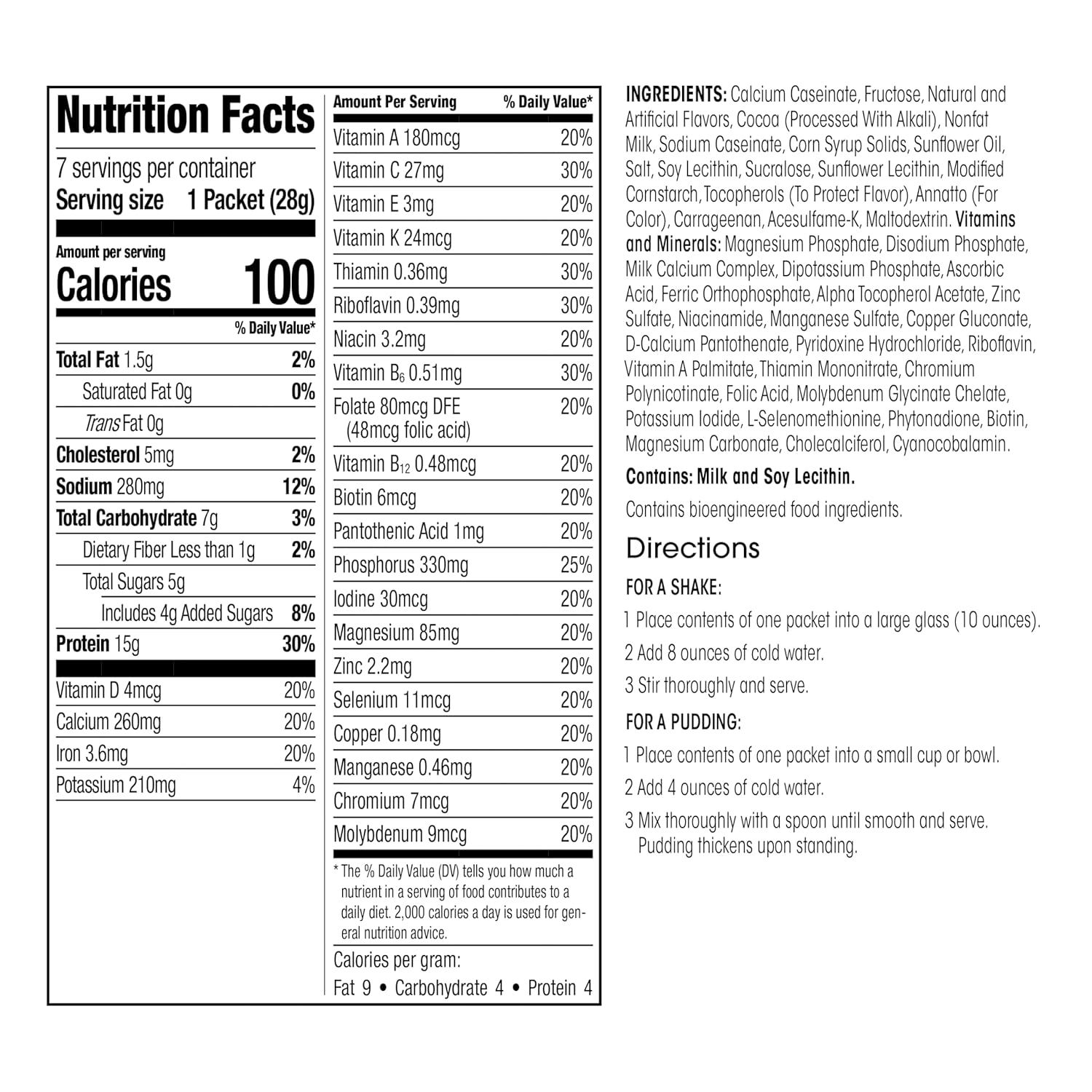 - Meal Replacement Shake: Packed with 15g of calcium caseinate protein, 24 essential vitamins and minerals, and 100 calories.