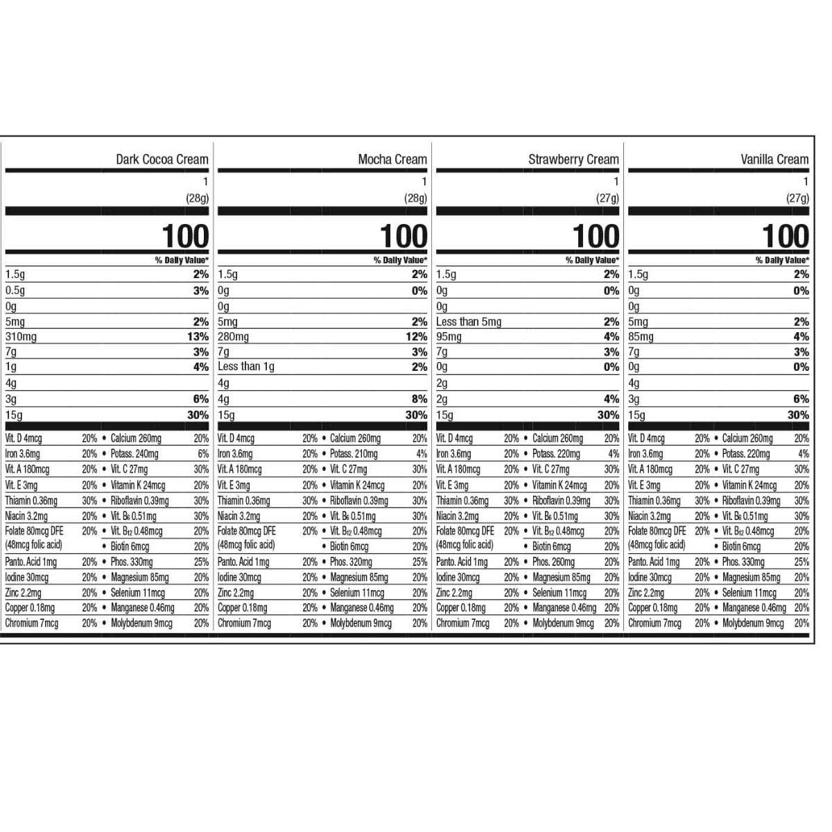 - Meal Replacement Shake: Packed with 15g of calcium caseinate protein, 24 essential vitamins and minerals, and 100 calories.
