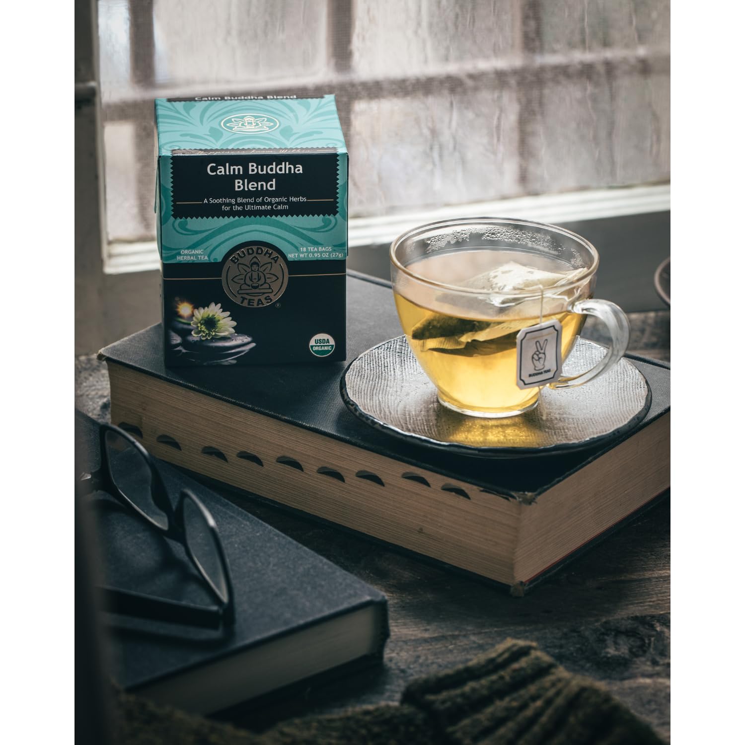 Buddha Teas - Calm Buddha Blend - Organic Herbal Tea - For Health & Wellbeing - Blend of Organic Herbs - Clean Ingredients - Caffeine Free - OU Kosher & Organic - Non-GMO - 18 Bleach-Free Tea Bags