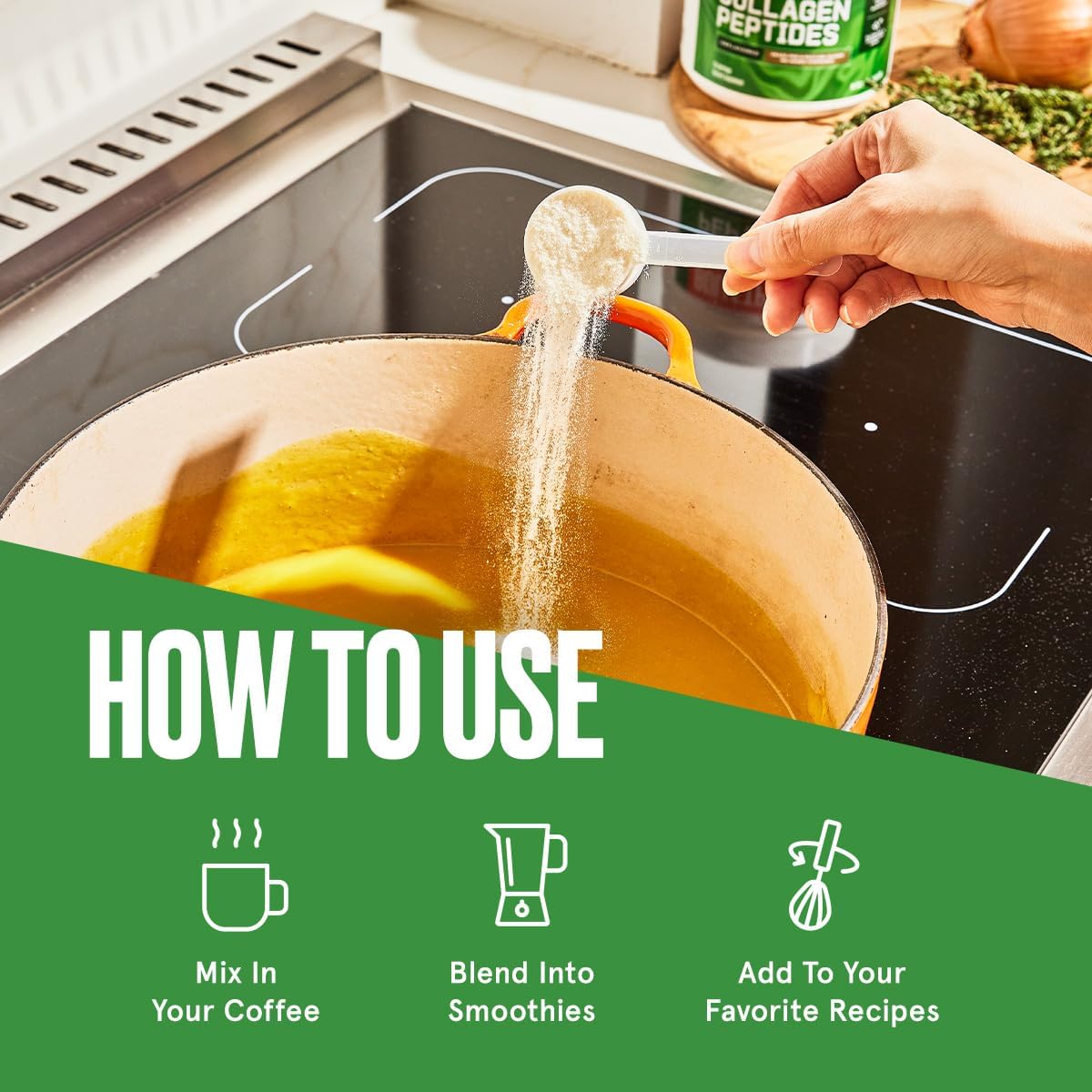 - Every serving of Collagen Peptides has 20g of collagen, no added sugar and mixes easily into hot or cold water; add to coffee, smoothies, soups and more