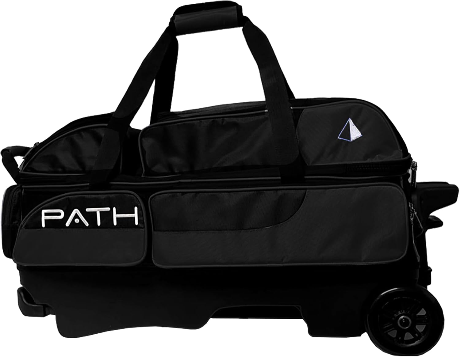 Pyramid Path Triple Premium Deluxe Roller Bowling Bag With Extra Large Separate Shoe Compartment (Up To US Mens Size 16) and 5 Accessory Pockets, 5" Wheels, Retractable Locking Handle - Extends to 42"
