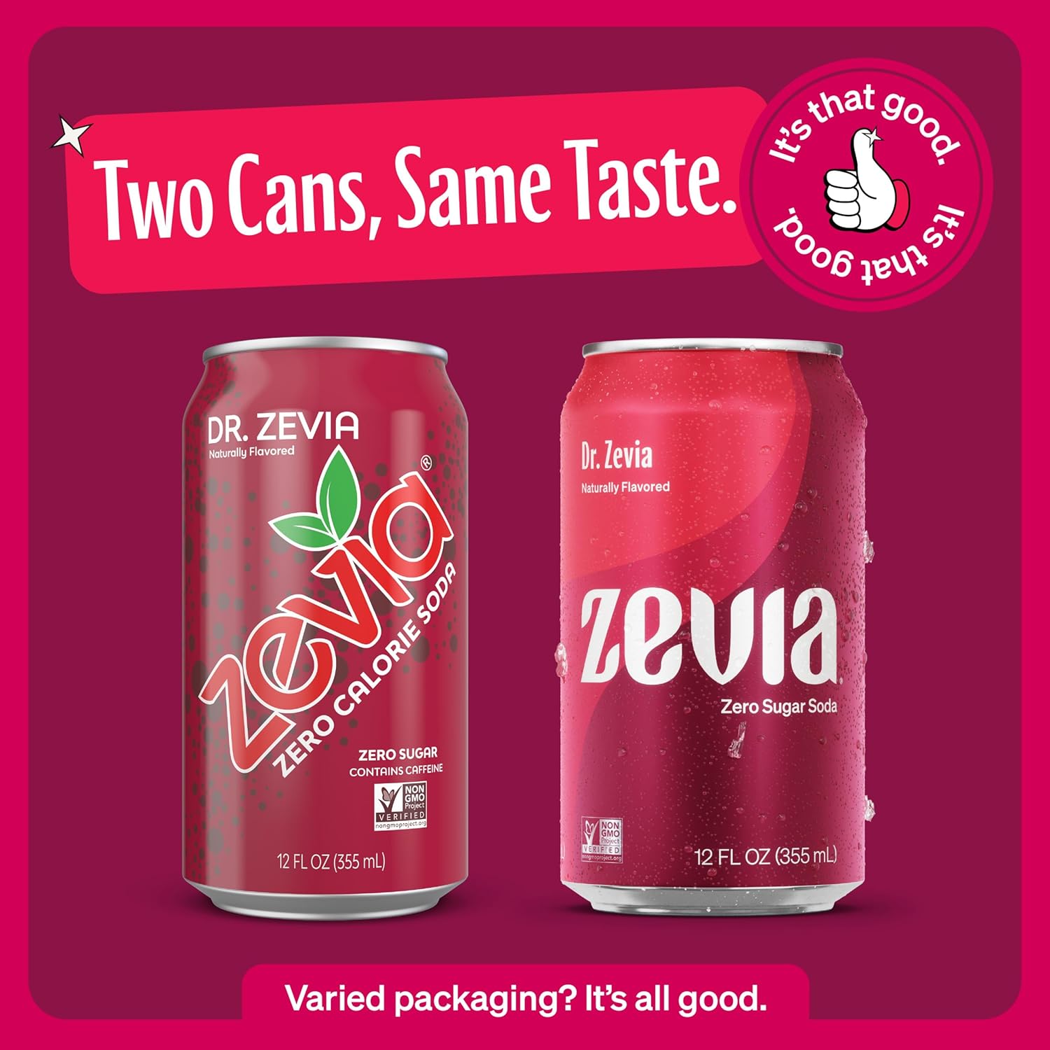 Zevia Zero Sugar Soda, Dr. Zevia, 12 oz Cans (24-Pack) – Naturally Sweetened, Zero Calorie Sugar Free Soda - Non-GMO Project Verified, Gluten-Free, Vegan