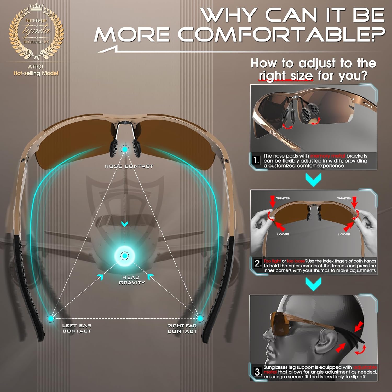 ATTCL Men's Sports Polarized Sunglasses Men for Driving running Fishing Golf - UV Protection Sun glasses Metal Frame