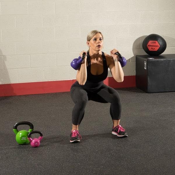 - HIGH QUALITY CONSTRUCTION: Body Solid kettlebells are crafted from solid one-piece cast iron construction with a long-lasting vinyl-coated exterior for extra durability; The permanent weight number is stamped into the bell and won't fade during use; Plus, the secure-grip handle is designed to give you a superior grip while lifting