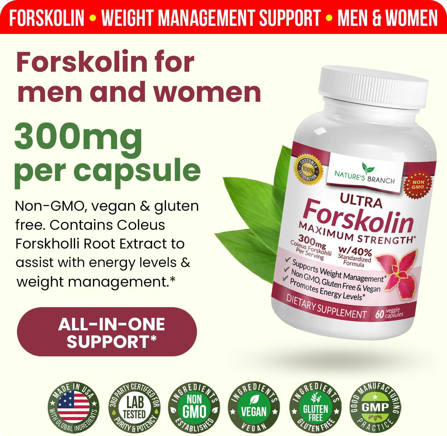 - OUR MAXIMUM STRENGTH FORSKOLIN FOR WEIGHT LOSS: Our highest strength, with a 40% standardized Forskolin formula, delivering a premium Coleus Forskohlii root extract per capsule. With 60 vegan capsules (2 month supply), our exclusive Forskolin extract contains 2X higher standardized ingredients than many other leading brands