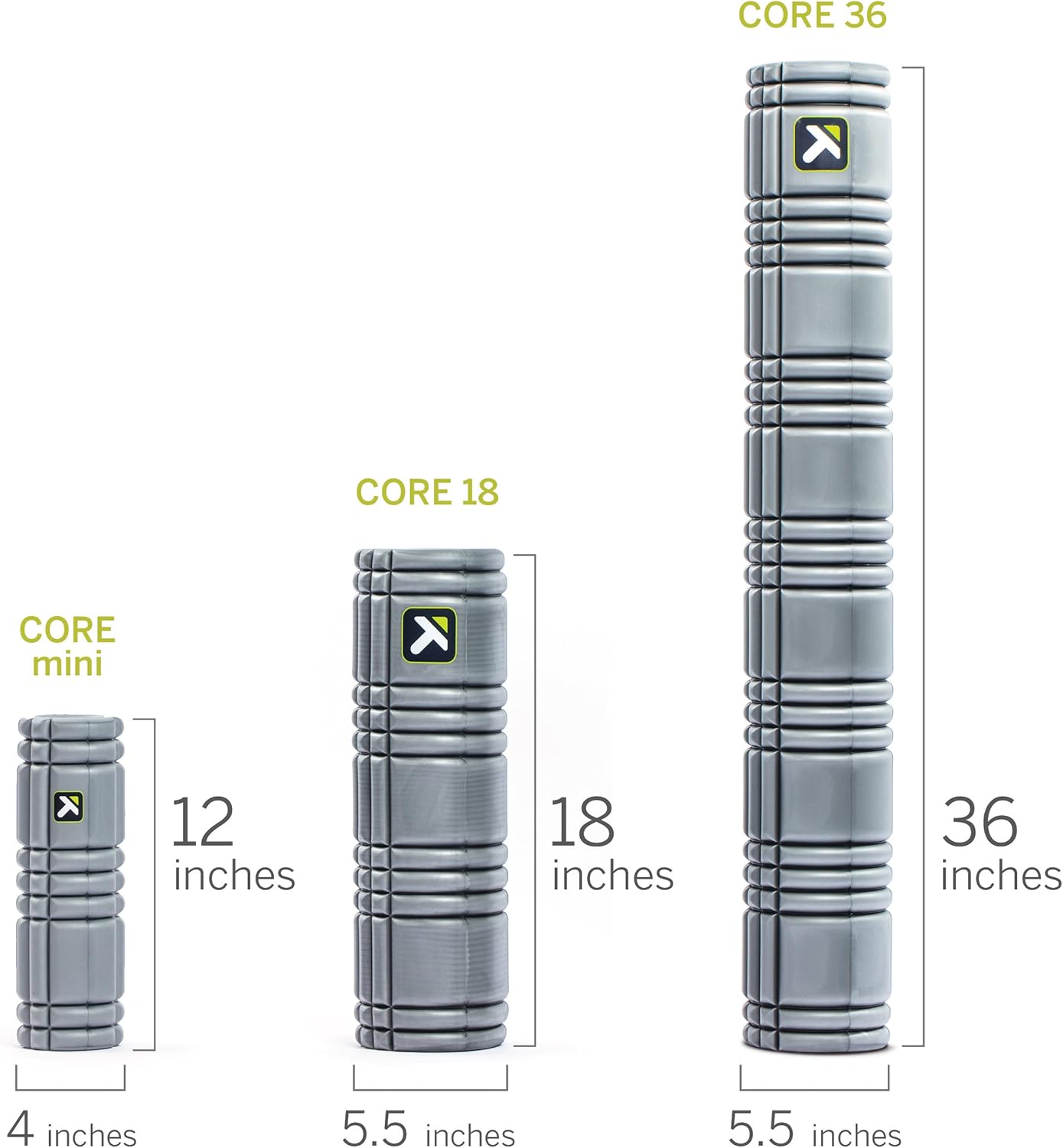 TriggerPoint CORE Foam Massage Roller with Softer Compression for Exercise, Deep Tissue and Muscle Recovery - Relieves Muscle Pain & Tightness, Improves Mobility & Circulation (12'', 18'', 36'')