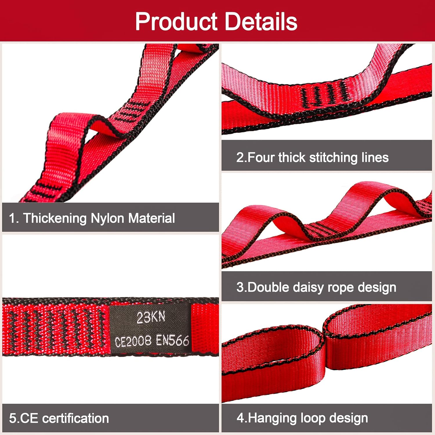 DASKING 23KN (5070 lbs) Heavy Duty Climbing Straps - 2 Pack Adjustable Daisy Chain Webbing for Aerial Yoga, Hammock, Fitness & Rigging - CE/EN566 Certified, Red/Grey
