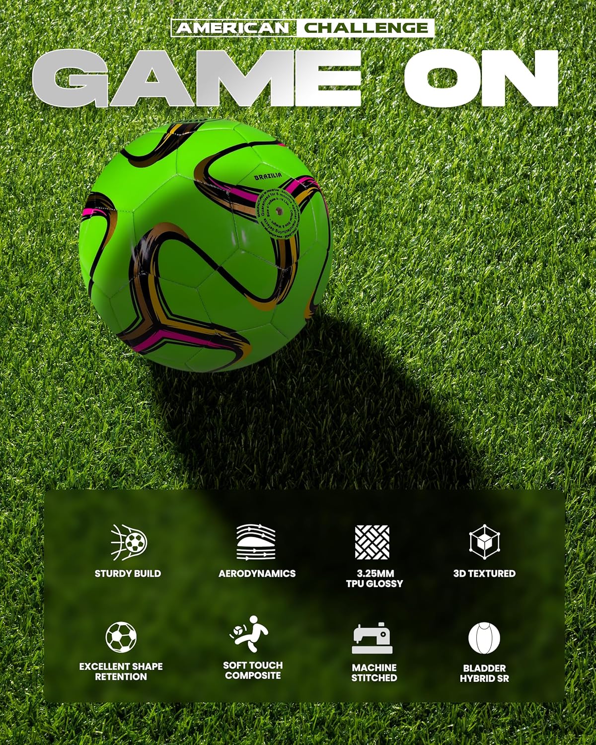 American Challenge Brasilia Soccer Ball – Soccer Ball Size 5, 4, 3 & 2 – for Youth & Adults – Ideal for Practice, Training & Grass Fields