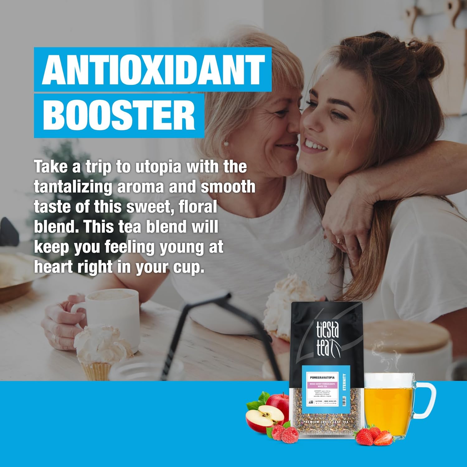 - POMEGRANATE MIXED BERRY-INFUSED WHITE TEA: Experience the vibrant flavors of Pomegranatopia with our Mixed-Berry Pomegranate White Tea. This organic loose leaf blend combines the tart sweetness of pomegranate with a delightful mix of fruit flavored tea. Whether you enjoy it hot for a cozy moment or iced for a refreshing treat, each sip captures the essence of summer.