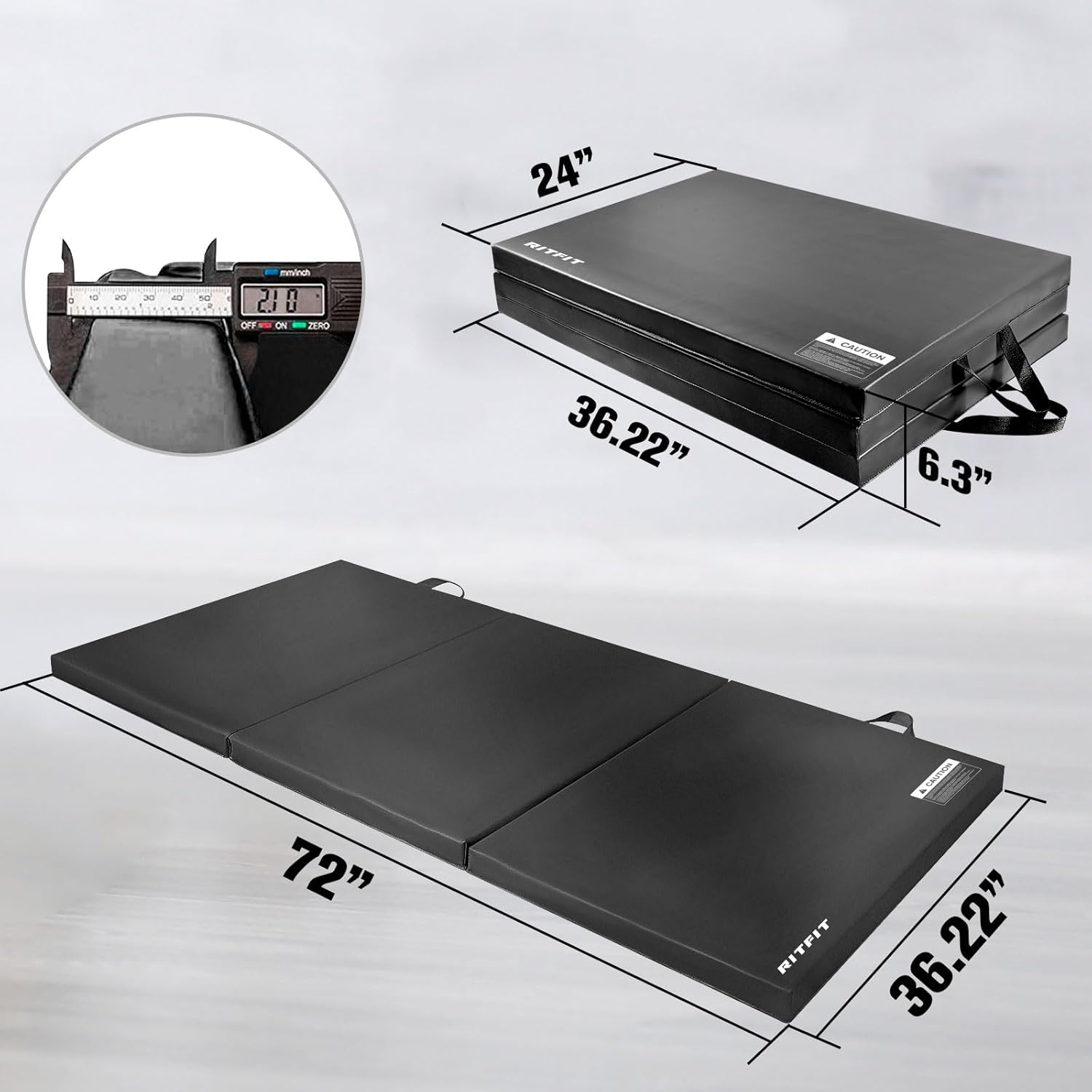RitFit Upgraded Folding Exercise Mat, 2 Inch Thick Gymnastics Mat 3’x6’,4’x8’,4x10’,2'x8' with Carrying Handles for Yoga, MMA, Stretching, Core Workouts and Home Gym Protective Flooring