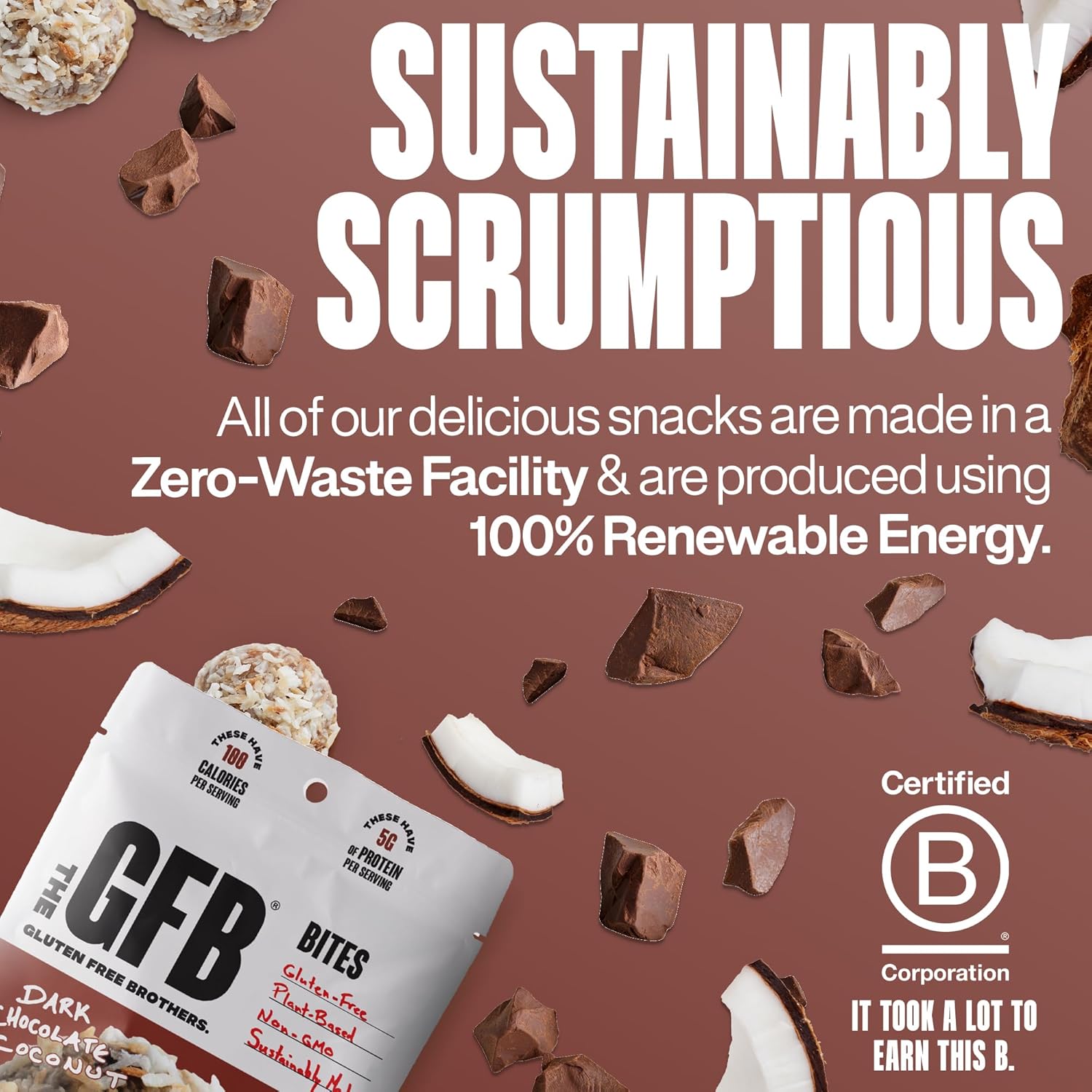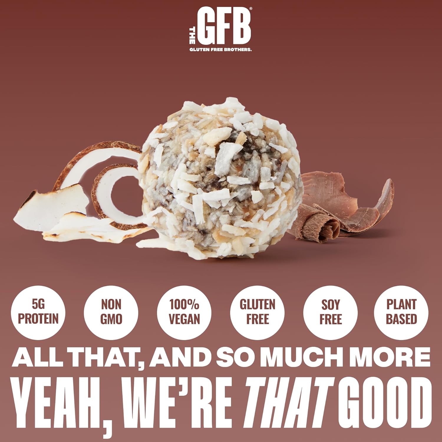 The GFB Dark Chocolate Coconut Protein Bites - Gluten Free, Plant Based, Non GMO, Sustainably Made – Ridiculously Tasty, Healthy, Vegan, Protein Energy Balls, 4 oz (6 Count)