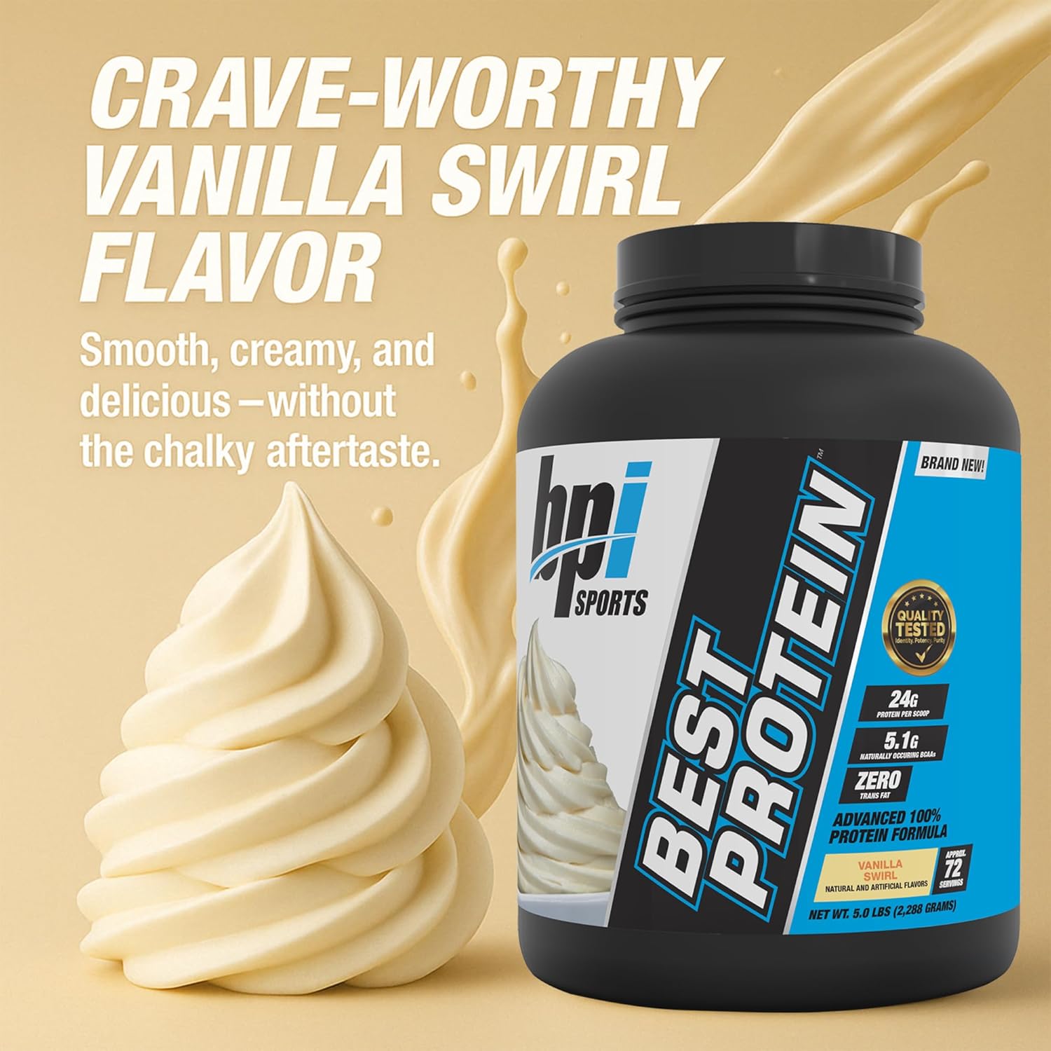BPI Sports Best Protein – 100% Whey Protein Powder – Muscle Growth, Recovery, Meal Replacement – No Fillers, Gluten-Free – Best Protein Powder for Men & Women | Vanilla Swirl – 5 Pounds