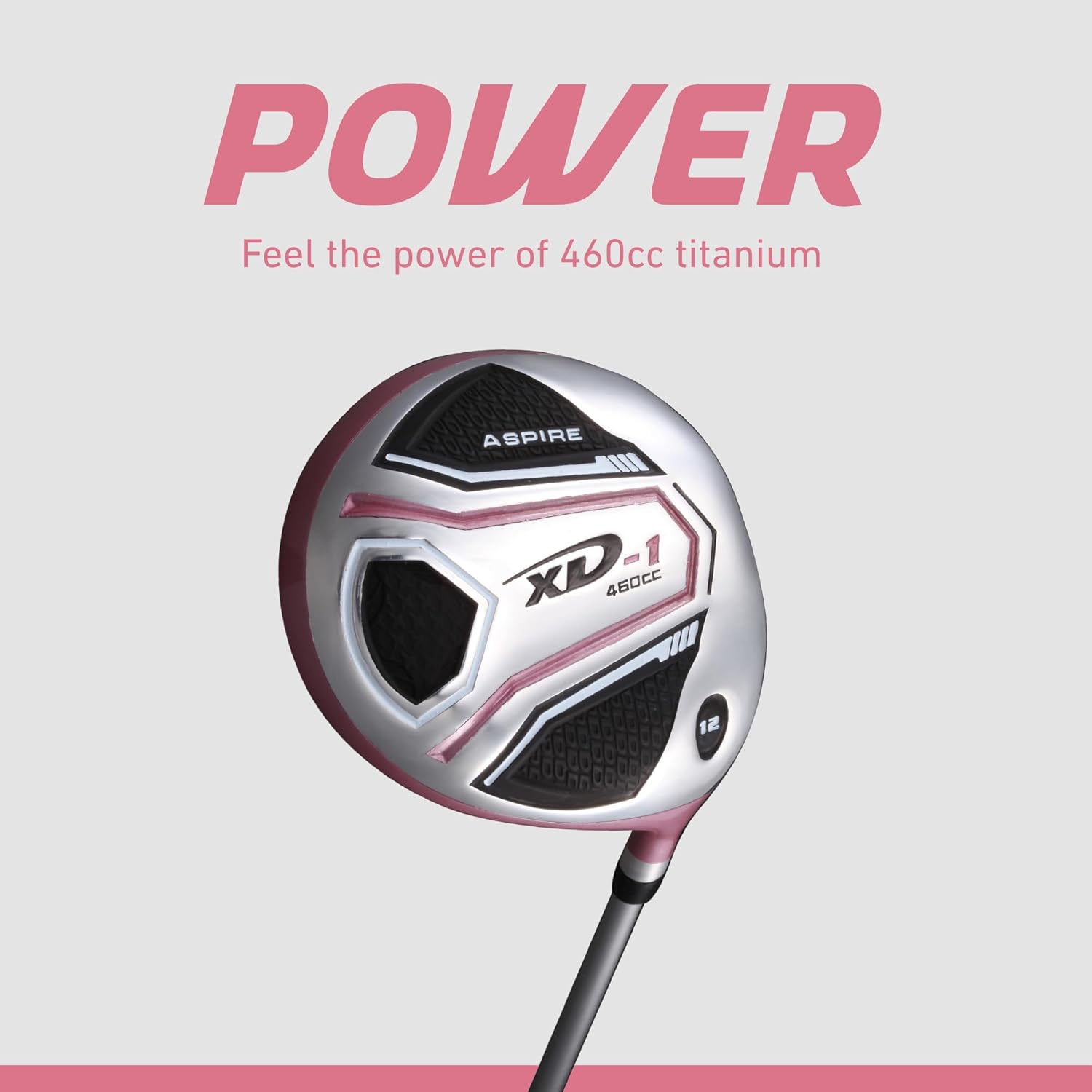 Aspire XD1 Womens Golf Clubs Full Set, Includes Driver, Fairway, Hybrid, 6-PW Irons, Putter, Stand Bag, 3 H/C's, Ultra-Light Graphite Shafts, Golf Clubs Women Right Handed, Comes in 3 Sizes, Pink