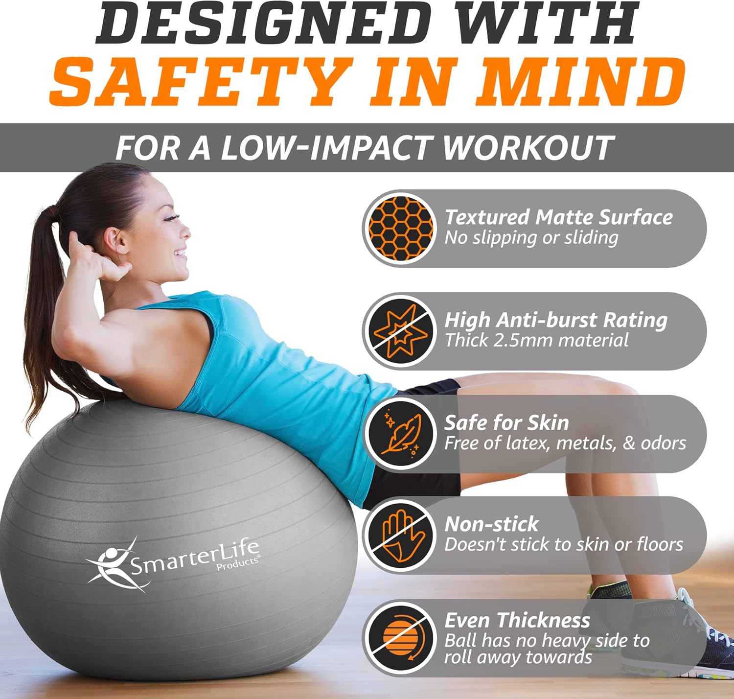SmarterLife Exercise Ball Yoga Ball for Fitness, Balance, Stability, or Pregnancy, Gym Ball for Core Workout, Physical Therapy, Yoga Ball Chair for Office, Anti-Slip Anti-Burst