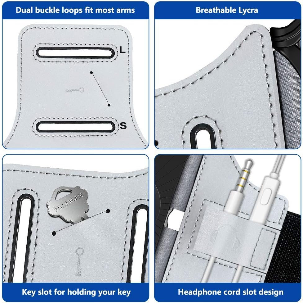 VUP Running Armband 360°Rotatable for iPhone 14/13/Pro Max/Pro/Mini/12/11/SE/Xs/XR/X/8/7/Plus, Fits All 4-6.7 Inch Smartphones, with Key Holder Phone Armband for Running Hiking Biking (Sliver)