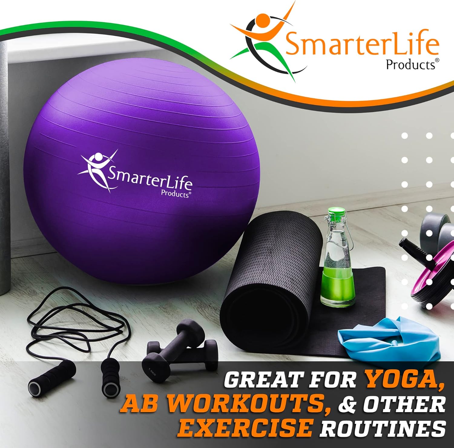 SmarterLife Exercise Ball Yoga Ball for Fitness, Balance, Stability, or Pregnancy, Gym Ball for Core Workout, Physical Therapy, Yoga Ball Chair for Office, Anti-Slip Anti-Burst