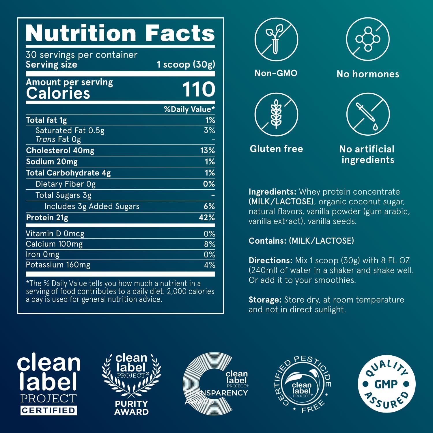Puori Whey Protein Powder - Bourbon Vanilla - PW1 Pasture Raised, Grass-Fed & Non-GMO - 100% Natural and Pure for Muscle Growth - 21g Protein 1.98lbs - Gluten-Free