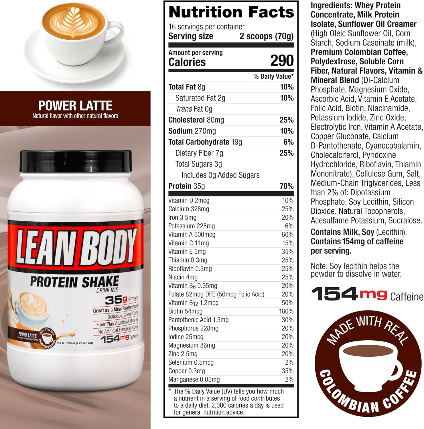 Labrada Lean Body MRP with Premium Columbia Coffee (154mg of Caffeine), Power Latte, 2.47LB Tub Packaging May Vary