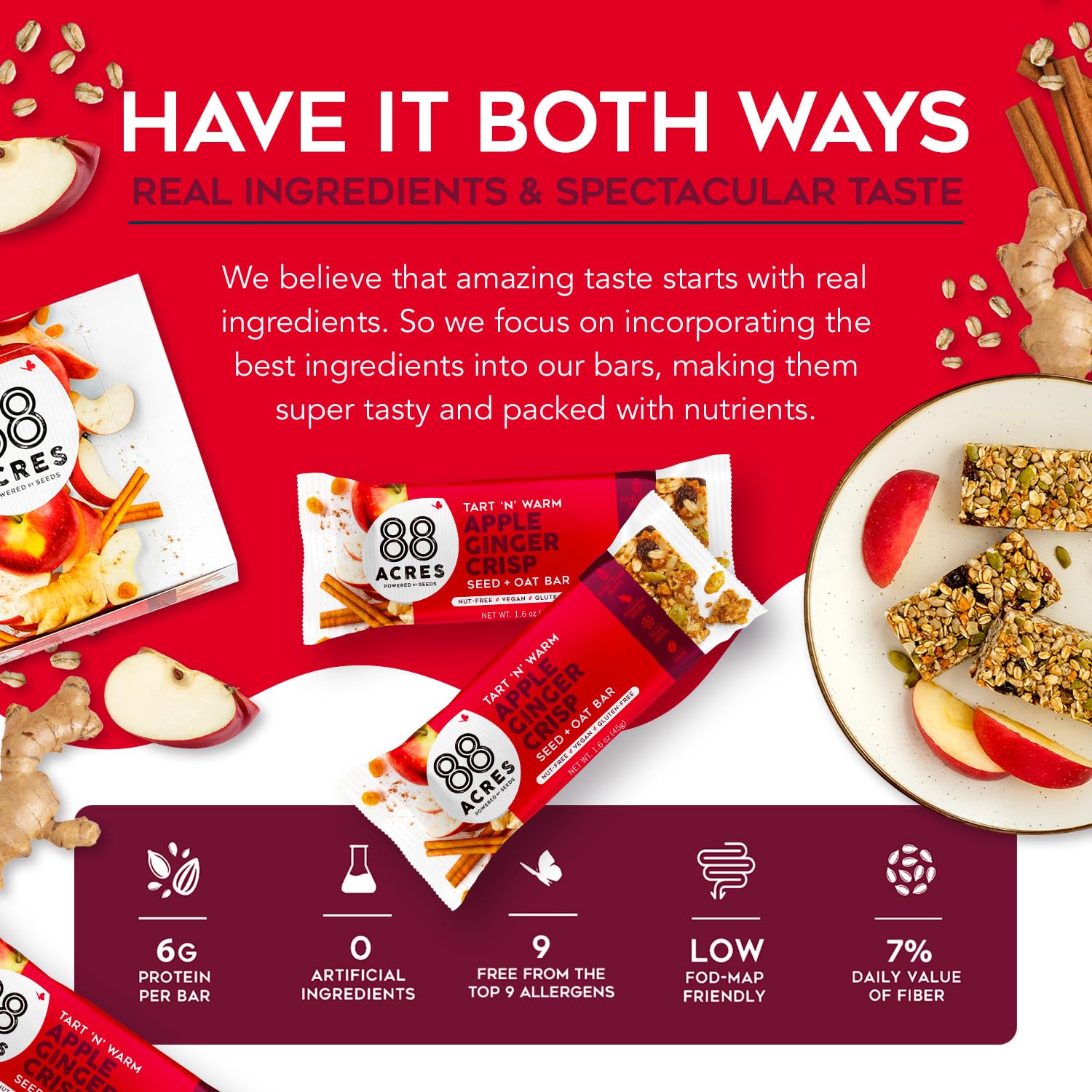 88 Acres Granola Bars | Apple Ginger Crisp | Gluten Free, Nut-Free Oat and Seed Snack Bar | Vegan & Non GMO | 12 Pack