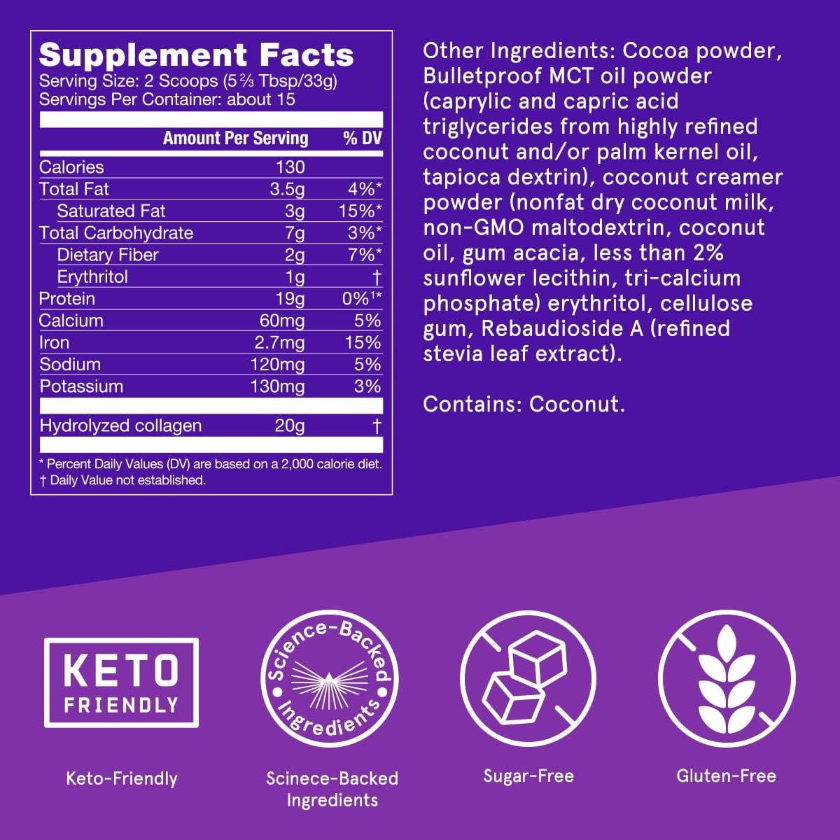 Bulletproof Chocolate Collagen Protein Powder with MCT Oil, 19g Protein, 17.6 Oz, Collagen Peptides and Amino Acids for Healthy Skin, Bones and Joints