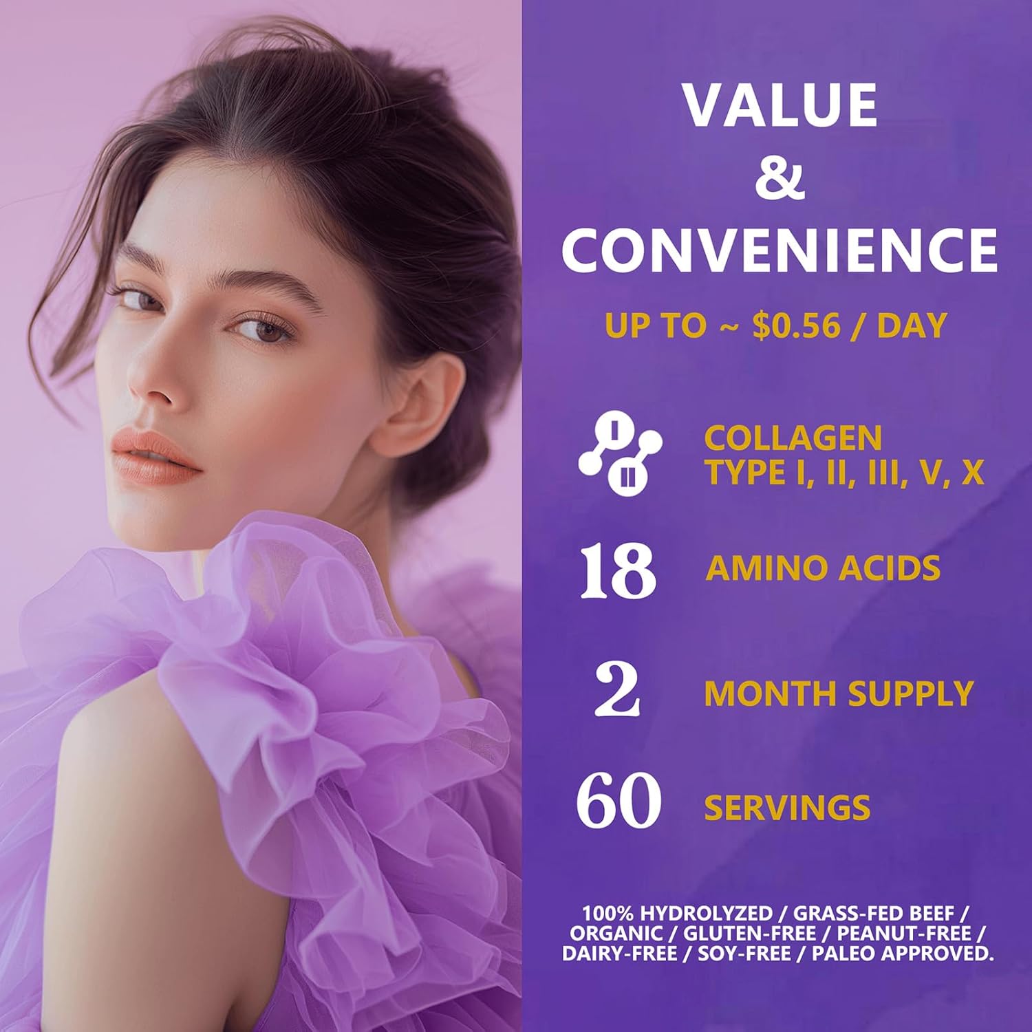 - ✅18 AMINO ACIDS: Rich in Glycine, Proline and Hydroxyproline to help improve the growth and appearance of hair and nails, while helping tighten and promote youthful skin.