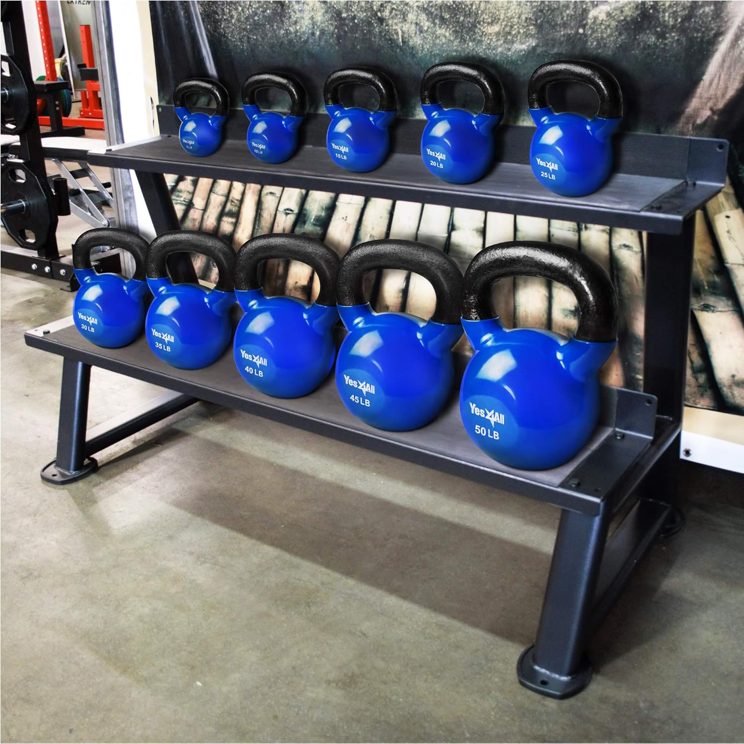 Yes4All Kettlebell Set Vinyl Coated Weights Combo for Full Body Workout Equipment Push up, Grip Strength Training, Dumbbell Weights Exercises