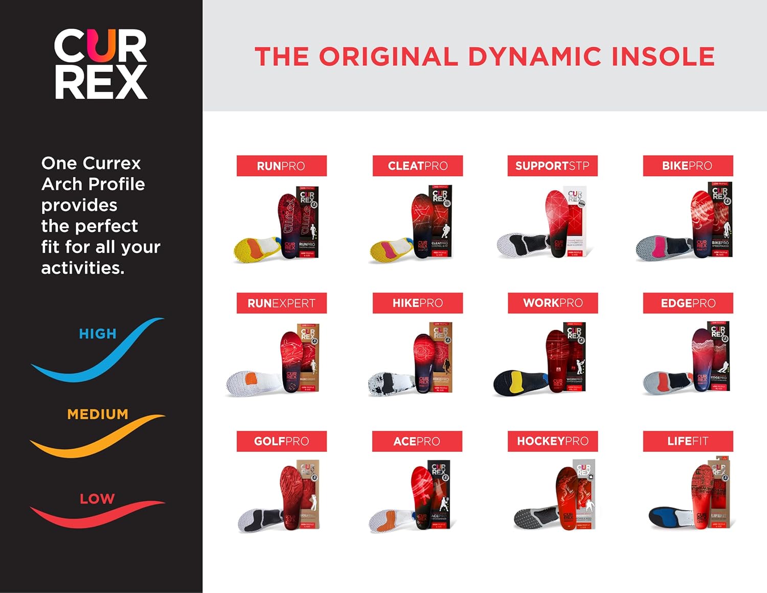 - Made for What Moves You: CURREX is the only insole company that offers a full line of activity-specific insoles customized to help improve how you move; whatever you or your family loves to do, from the workday through the weekend, CURREX makes moving more comfortable, leading to better performance and more fun