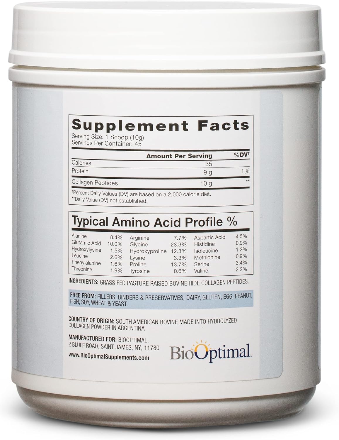 - UNFLAVORED: BioOptimal Collagen Peptides Powder uses a formula with an unflavored taste and no additives, making it perfect for adding to water, smoothies, or any other drink.